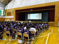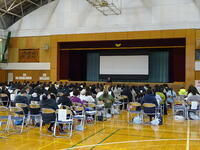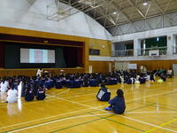 1月24日に、今年の4月に本校に入学する児童とその保護者を対象とする入学説明会を実施しました。予定では146人の生徒が入学します。前半は、生徒会本部の生徒が児童を連れて校内を案内し、授業の様子も見学しました。その間、保護者には体育館に残ってもらい、教員からの説明がありました。後半は児童と保護者が同席し、生徒会本部の生徒によるスライドを使った学校紹介を行いました。新入生の入学を楽しみにしています。