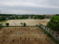 4月30日の今日、1年生が部活動の本入部となりました。久しぶりに3つの学年がそろっての練習が始まりました。写真は校舎4階からグランドの様子を撮ったものです。